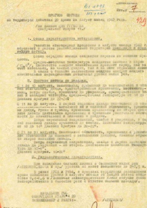 3. Ф.825, оп.0000001,д.02 (Прогноз погоды на август 1942 года).