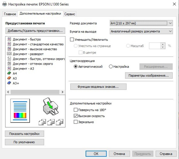 4. Низкая скорость печати в режимах высокого качества. Пример, при выставленных настройках: Epson Matte и высоком качестве на печать листа A3 уходит за 10 минут;