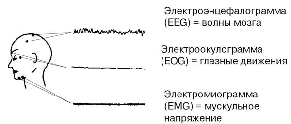 И, наоборот, в NREM-сне отсутствуют видимые движения глаз и наблюдаются совершенно другие кривые EEG.