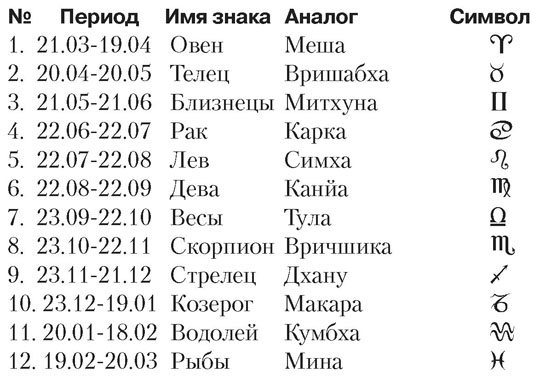 Начнем с более привычных нам раши (или же знаков Зодиака). Это всё те же давно известные нам Овен, Телец, Близнецы, правда на санскрите у них несколько непривычные нам названия.