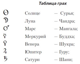 Многие авторы полагают, что индийскую астрологию следует уснащать лишь индийской терминологией, но ввиду того, что большинство наших соотечественников не владеет санскритом и читает по-русски, мы решились давать привычную терминологию.