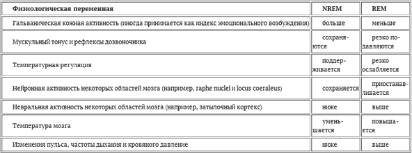 В основном главные отличия стадий 1, 2, 3 и 4 видны в их узорах (см. илл.). Конечно, имеются некоторые исключения, но общая физиология этих стадий схожа. И, наоборот, физиология REM-сна радикально отличается от других четырех стадий. Поэтому ученые выделяют два основных вида сна: REM-сон и NREM-сон (то есть неREM-сон).