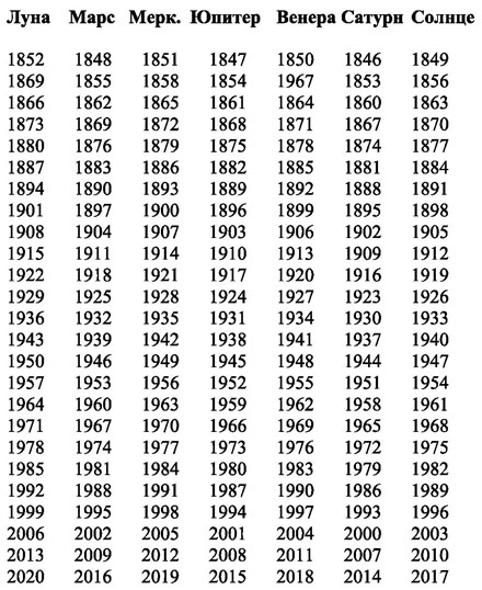 Таблица планетарных годов