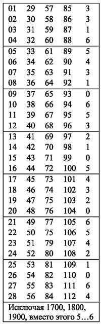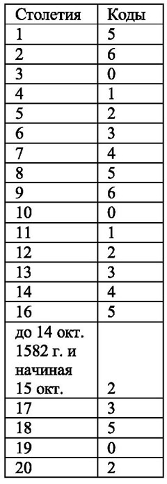 Впрочем, то же самое есть и в индийской астрологии, как вы вскоре и сами увидите. День недели, в который был рожден человек, является, таким образом одним из важнейших показателей его судьбы. Как определить этот день, если и мама и бабушка о нем забыли? В интернете есть компьютерные программы, позволяющие определить в какой день недели был хоть в момент открытия Колумбом Америки. Но… существуют и способы попроще, это так называемые «вечные календари», представляющие собой несложные таблицы, пользуясь которыми вы с легкостью сможете определить, каким днем недели была любая историческая дата.