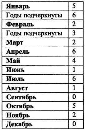 Затем складываете эти коды и их сумма согласно таблице 5 даст вам день недели (согласно таблице 5). Видите как просто? Допустим, вас интересует дата 29 июня 1954 года.