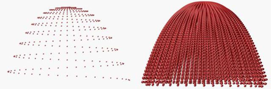 Фотоядерные реакции «тяжёлыми» фотонами. Рассмотренные выше фотоны, полученные при излучении возбуждённых атомов или ядер, назовём «лёгкими» фотонами, только таким фотонам свойственно определение их энергии через произведение частоты и постоянной Планка. К их числу следует отнести и лазерное излучение даже высоких плотностей потока луча. Однако в природе Вселенной[98] встречаются такие процессы, например, электрические разряды атмосферных молний, при которых синфазно за очень короткий промежуток времени порядка 10-12 секунды и в очень малом локализованном объёме[99] в импульсно-переменном электрическом поле больших токов и напряжений рождаются путём слияния магнитные заряды с максимально возможной плотностью упаковки зёрен-потенциалов как на самих спиралях, формирующих сферу этого заряда, так и названных спиралей, вплотную примыкающих друг к другу (фиг. 2.5). Назовём такие электромагнитные фотоны «тяжёлыми».