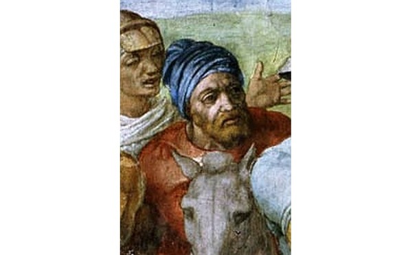 Но, к сожалению, не сохранилось ни одного портрета или автопортрета молодого Микеланджело. Тем не менее, удалось определить, что Микеланджело изображен на переднем плане картины в образе Гераклита. Исследователи долгое время предполагали, что эта мощная одинокая фигура задумчивого философа – портрет Микеланджело. Но уверенность в этом появилась, когда было замечено, что колено Гераклита обладает ярко выраженными признаками подагры, которой в то время болел Микеланджело. Вот так выглядел молодой Микеланджело Буонарроти.