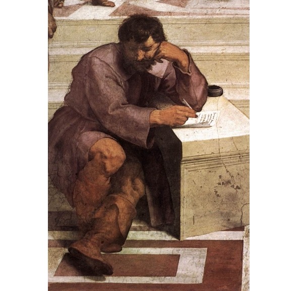 На картине «Афинская школа» Рафаэль изобразил различных философов Древней Греции.