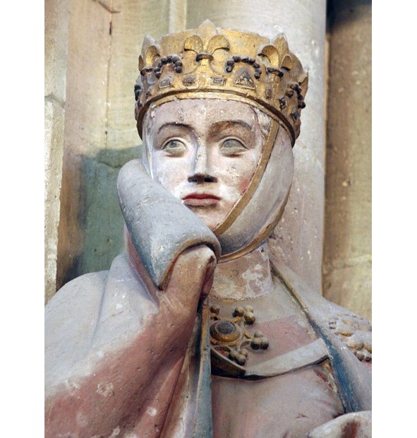 Единственная улыбающаяся средневековая скульптура была создана в середине XIII-го века неизвестным гением. Мы называем его Наумбургский Мастер, поскольку он изваял двенадцать скульптур наумбургского кафедрального собора. Это скульптуры представляют собой портретные изображения аристократов, оплативших постройку собора. Самая известная из них – майсенская маркграфиня Ута.