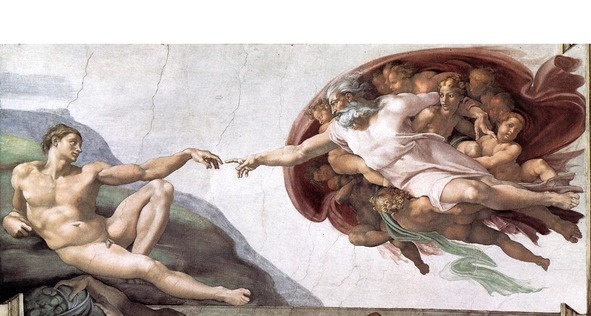 На фреске «Сотворение Евы» Микеланджело с помощью анатомических аллегорий показывает момент, когда бог вдохнул жизнь в Еву.