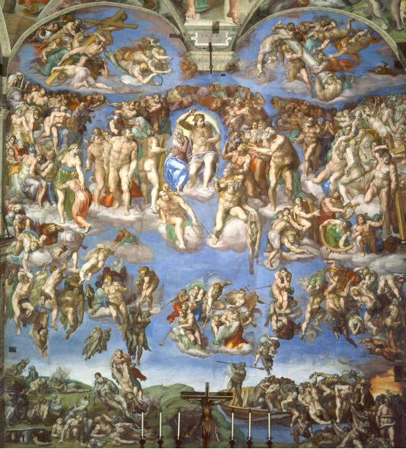 А свою самую впечатляющую метафору Микеланджело передал с помощью человеческой кожи на центральной, важнейшей и самой впечатляющей фреске Сикстинской капеллы – на «Страшном суде». Любопытно, что пять веков практически никто не понимал главную идею этого великого произведения искусства.