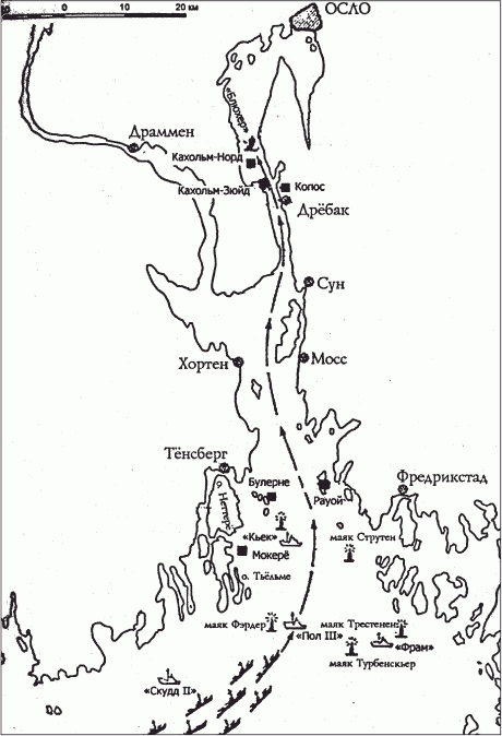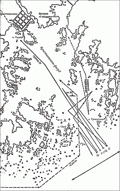 Таким образом, ни один норвежский корабль не попытался даже оказать сопротивление, хотя при эффективной поддержке береговых батарей они имели бы все шансы на успех.