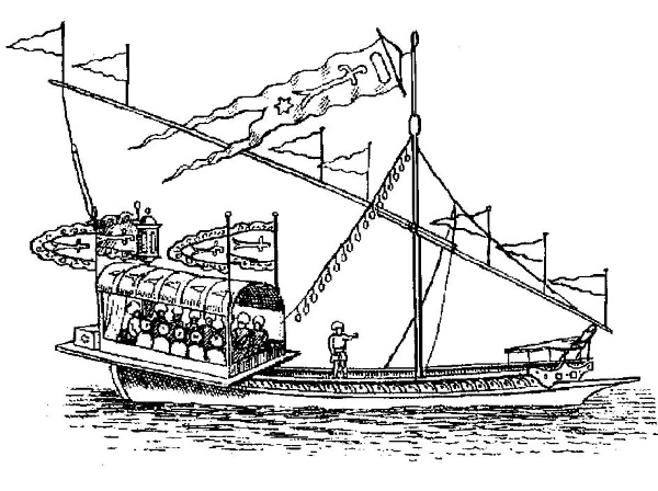 Встретив на своем пути реку, татары переплывали ее, сделав из камыша плот, который привязывали к хвосту лошади и на который клали все свое имущество. Сами же, раздевшись донага, хватались одной рукой за гриву коня, понуждая его к скорейшей переправе через реку, другой рукой гребли и быстро переправлялись с одного берега на другой. Иногда вместо импровизированных плотов татары применяли лодки, поперек которых клали толстые жерди, к жердям привязывали лошадей, одинаковое число, для равновесия, с каждой стороны. Внутрь лодки они складывали свои вещи и таким способом переправлялись через реку. Переправы татары совершали всем строем, растянувшись вдоль реки иногда километра на два.