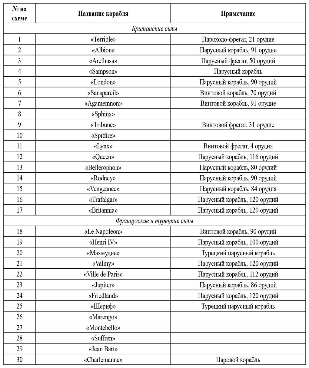 Согласно заранее разработанному плану, французские суда должны были обстреливать укрепления Южной стороны, а английские – Северной. Между французскими находились и немногочисленные турецкие корабли.