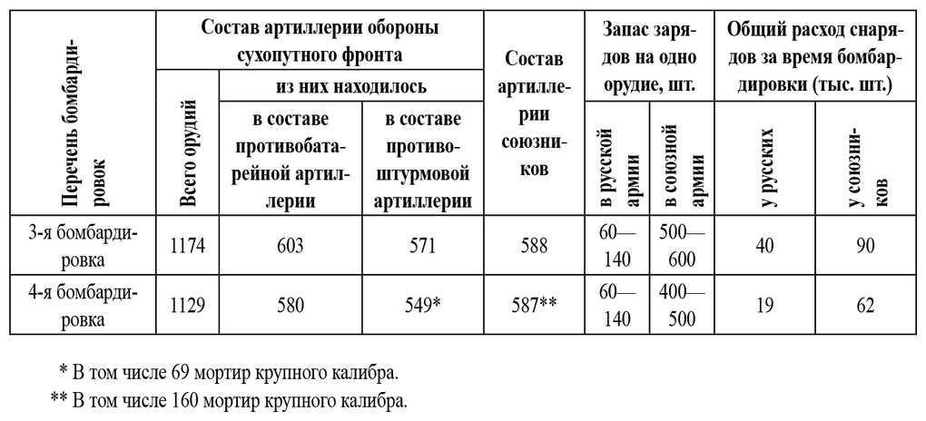 Из 152-х береговых орудий было сделано 16 тысяч выстрелов. Союзники из 1244 орудий выпустили 50 тысяч снарядов.