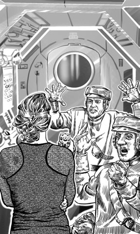 …Как только открылась дверь, ведущая из спортзала в коридор, Март Зиль приказал положить между всеми открывшимися дверями и дверными проёмами какие-то предметы: спортивный инвентарь, части скафандров, то есть всё, что гарантировало защиту от «технических неполадок».