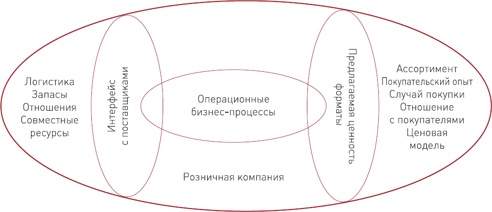 Часто, когда речь идет о бизнес-модели розничной компании, этот термин сужается до формата магазинов, площади, ассортиментной матрицы, сопутствующих услуг, ценовой политики, дизайна интерьера и экстерьера, т. е. акцент делается на ценностное предложение, при этом упускаются из вида другие важные составляющие.