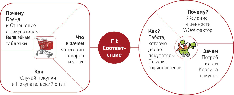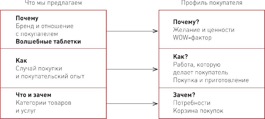 Как: для какого случая покупки мы создаем ценность, чтобы соответствовать моменту, когда наш покупатель планирует покупку? Это быстрая покупка, покупка «пополнение запасов», покупка «прозапас», получение впечатлений или прогулка-шопинг? Какой покупательский опыт он ожидает получить?