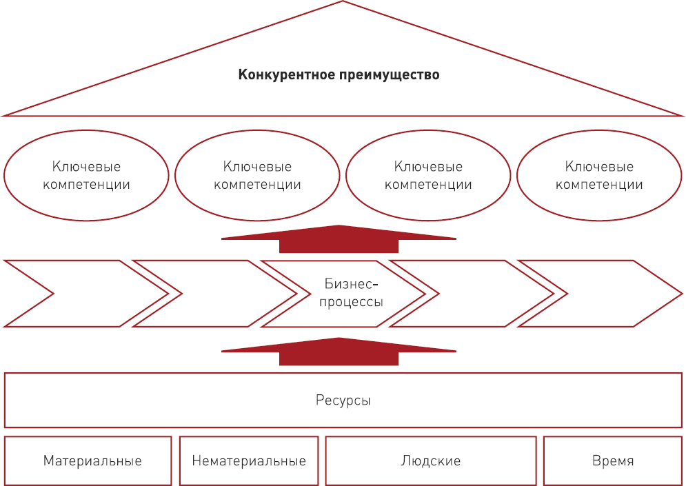 Ресурсы компании – это все материальные, нематериальные, финансовые, людские активы (объекты), которыми компания может воспользоваться для создания ценности для покупателей и выполнения своих бизнес-процессов. Например, это могут быть склады, магазины, собственный транспорт, кредитные ресурсы, зарегистрированные торговые марки, корпоративная культура, компетентные сотрудники и т. п. Ресурсы являются также важным элементом операционной модели, но не могут служить источником устойчивого конкурентного преимущества в отличие от ключевых организационных способностей, так как аналогичные ресурсы могут быть созданы, куплены конкурентами или перекуплены (например, в случае людских ресурсов).