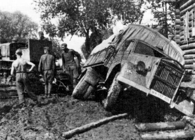 Немецкие историки и мемуаристы часто указывают на раскисшие дороги как на основной фактор неудач войск группы армий «Центр». Основная ошибка здесь – это тезис о том, что распутица не оказывала воздействия на советские войска. Раскисшие в период дождей дороги действовали на обе противоборствующие стороны. Но такое состояние дорог оказывало поистине катастрофическое воздействие на отступающих. Особенно это касалось советских войск, пробивающихся из окружений, которые были вынуждены оставлять врагу или уничтожать орудия, автотранспорт, радиостанции. Для наступающих немецких войск застревание или даже поломка автотранспорта, танков и тягачей не означали автоматически их безвозвратной потери для вермахта.