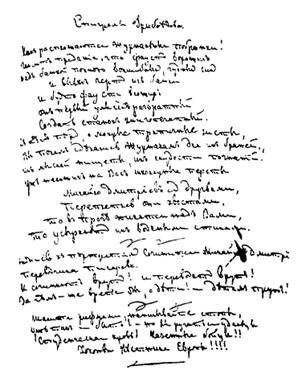 По всей вероятности под впечатлением ничтожности всех этих литературных работ Грибоедов сетовал в письме Бегичеву 9 сентября 1825 года: «Ничего не написал – не знаю, не слишком ли я от себя требую? умею ли писать? Право, для меня все еще загадка. Что у меня с избытком найдется, что сказать, – за это ручаюсь; отчего же я нем? Нем, как гроб!»