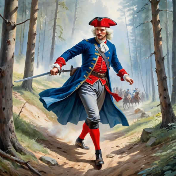 Затем Нарышкин13 осмотрел того разбойника, что они убили с Дуремаром вдвоём. Зелёный кафтан, короткие штаны и сапоги ботфорты. Забрал у того оружие и несколько медных монет.