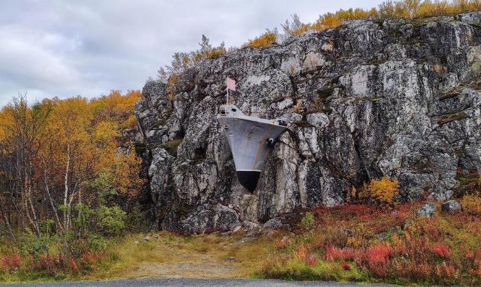 При подъезде к Лиинахамари их встретил форштевень боевого корабля, вмонтированный в отвесную скалу, неповторимая визитная карточка гарнизона моряков. Вот он знаменитый у подводников «медвежий угол» Заполярья! Вокруг раскинулись скалы, горы, раскрашенные самыми необычайными красками природы. Конечно не Кавказ, но что – то неповторимо – дикое и одновременно чарующее веяло от этого разнообразия скал. И море, которое уютно расположилось в этих чашах среди гор, блестело ровным ковром бирюзово-синих мазков кисти художника, постепенно уходящее в высь неба, смешиваясь с такими же необычайными красками.