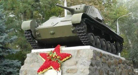 Мемориал «Братское кладбище». Танк Т-70, первым 13 октября 1943 года вошедший в Мелитополь в боях с немецко-фашистскими захватчиками.