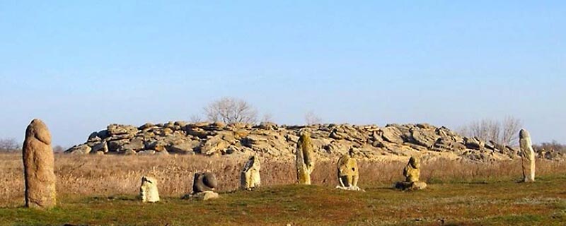 Перед всадницами внизу, под горой, расположилась долина, по которой не спеша несла свои воды река, поросшая местами ивняком, с удивительно-домашним названием – Молочная. За ней виднелся курган из жёлтого речного песка, покрытый огромными глыбами камней в несколько тонн каждая.