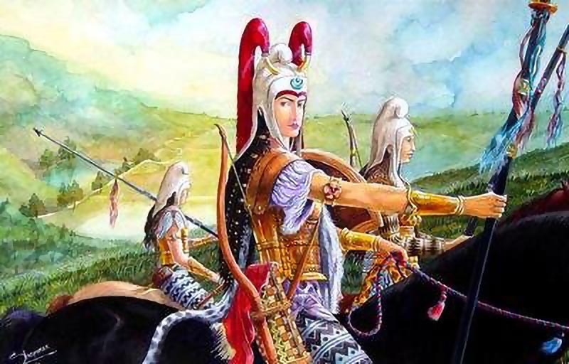 Много былин, историй рассказывают о воинственных женщинах-амазонках. Среди них есть сказание, рассказывающее об Александре Македонском, как великий полководец встречается с воинственными девами. Романтически разукрашенное, оно повествует, как Александр с войском, приблизившись к землям амазонок, увидел, что они значительно превосходят ростом прочих женщин, отличаются красотой и здоровьем, носят цветную одежду, сообразительны и сражаются серебряными секирами.