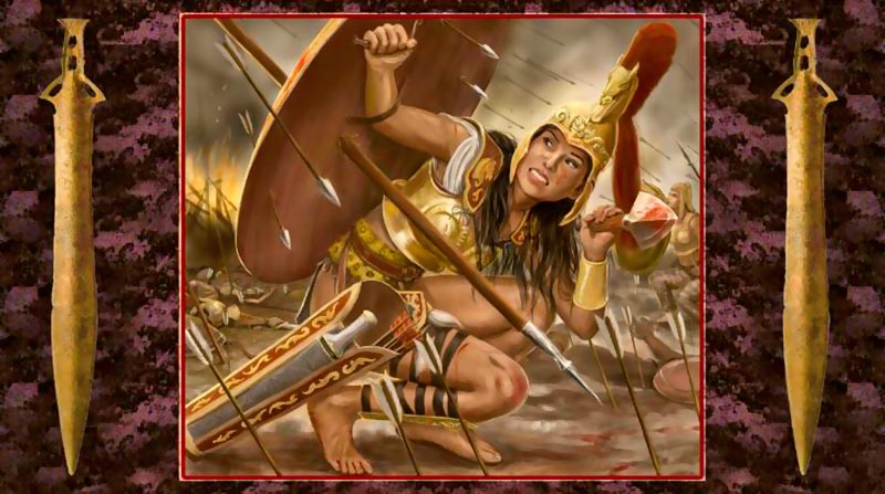 В это время, чтоб поддержать сарматов, был дан сигнал к атаке амазонкам, и конница племени врезалась в гущу сражающихся, пытаясь оказать помощь и внести перелом в битве. Напряжение дошло до своего предела. Царица племени, рассекая врагов мечом, появлялась то тут, то там, врезаясь в самую гущу боя. Воинственные красавицы бились бесстрашно, но победа становилась всё призрачней, и, наконец, был дан сигнал к отходу.