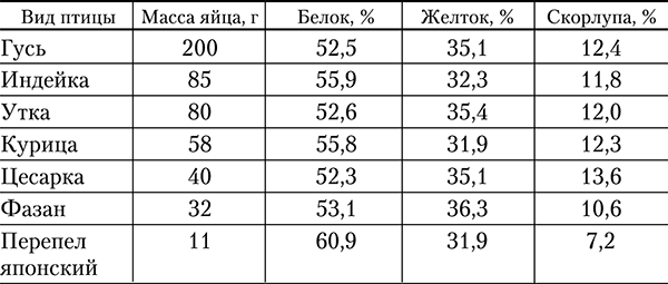 По качеству состава перепелиные яйца несколько отличаются от других видов птиц (табл. 4).