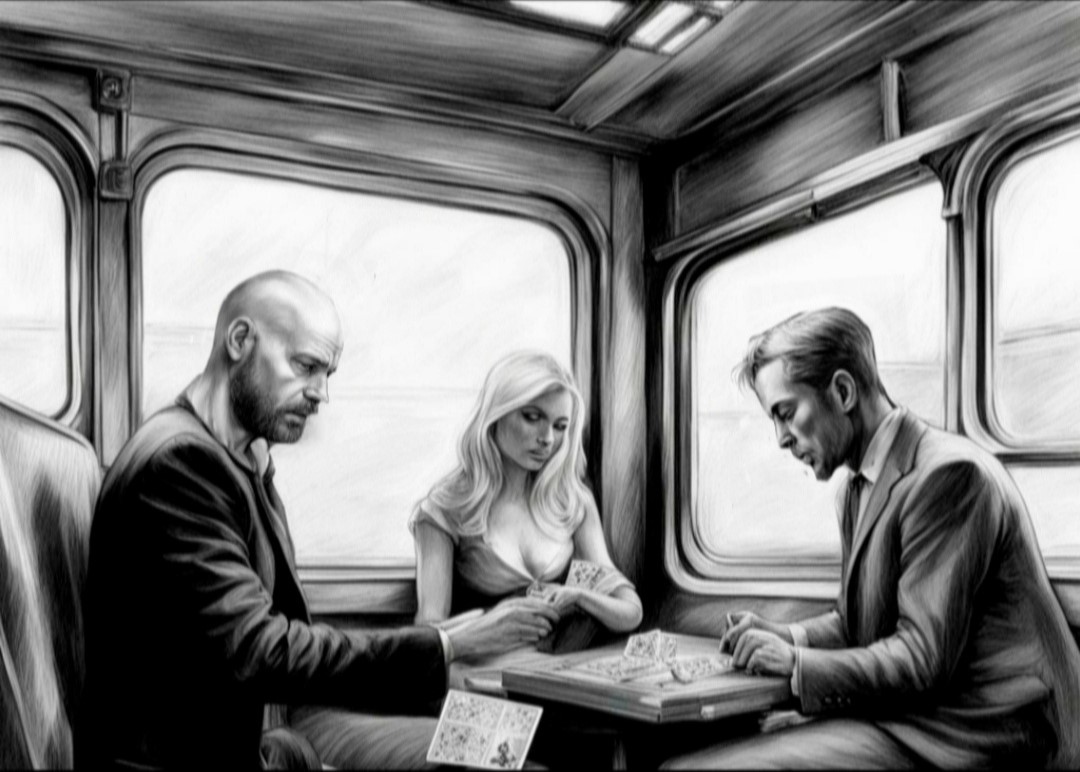 Зайдя в купе, они увидели немцев, которые играли в карты.