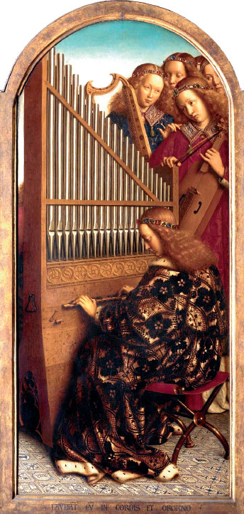 Музицирующие ангелы. Створка «Гентского алтаря» Яна ван Эйка. 1432