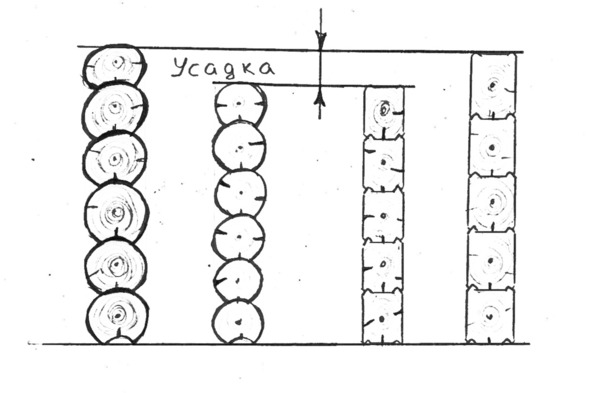 Рис. 5. Усадка стены дома из бревна и бруса
