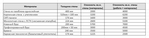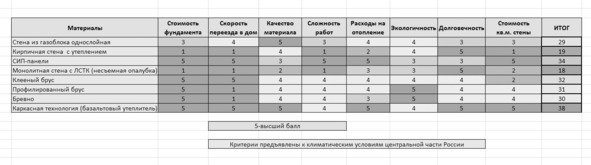 Ниже представлены таблицы сравнительных характеристик строительных технологий (табл. 1, 2).