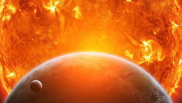 – Солнце светится и выбрасывает такое большое количество энергии, потому что это колоссальный термоядерный реактор. В центре звезды проходят реакции по превращению водорода в гелий с выбросом огромного количества энергии. И когда водород закончится, то в термоядерные реакции вступит гелий – именно на этой стадии Солнце превратится в красного гиганта. Выглядеть это будет примерно так, – он показал изображение огромного солнца.