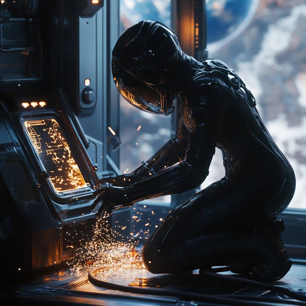 Замена оказалась сложной и трудоемкой задачей. Плата плотно упакована в кабели, и извлечь ее было непросто. Проведя несколько часов возле блока, осторожно извлекла нужную плату, заменила элементы и установила обратно, стараясь не повредить окружающие компоненты. Этот процесс повторился и со второй платой. Потратив целый день на ремонт только двух плат и невероятно усталая, она вернулась в жилой отсек, сняла скафандр, перекусила, упала в постель и провались в сон без сновидений.