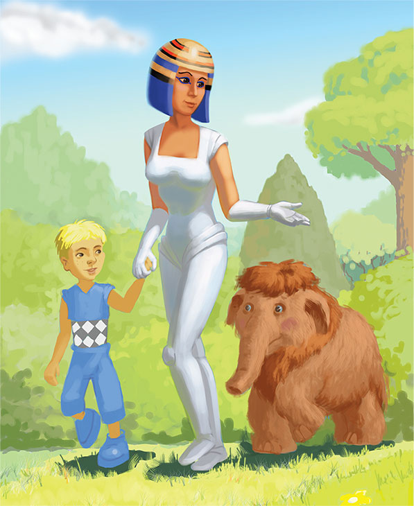 – Сейчас я тебе кое-что покажу, – загадочно произнесла Мила, и позвала к себе робота. Когда тот подошел, она взяла его за руку и попросила Буку дотронуться до нее своим хоботком. Мамонтенок осторожно, и с какой-то робостью дотронулся до руки робота, и тут же восторженно воскликнул: