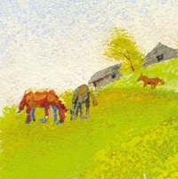 Звал своих лошадок, искал их следы на влажной земле у ручья. Наконец в роще на краю поля услышал знакомое ржание. Вот они, отцовские жеребята, все четверо. Подняли морды, лакомятся молодыми побегами берёзы. «Ничего, – подумал Варфоломей, – есть у меня для вас лакомство повкуснее». Достал из котомки краюху ржаного хлебца, дал каждому по кусочку. Ну всё. Теперь они до самого дома будут за ним бежать как привязанные, ждать ещё угощения. И отправился Варфоломей с коньками домой.