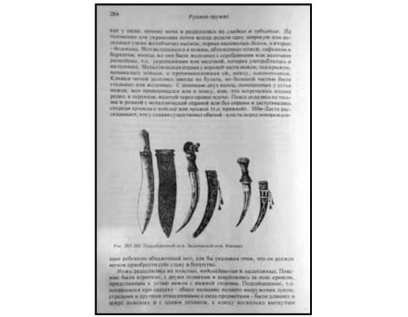 В результате такой научной деятельности, появились ножи которыми якобы были вооружены русские люди и воины – поясной, полевой, засапожный и подсайдашный. И как итог, новый пласт русской культуры. В итоге, в научный оборот были запущены выдумки и домыслы. А точнее, только им «немцам» ведомый по своему содержанию иноземный домысел, ставший псевдонаучной аксиомой фактов истории русского оружия и русского боевого искусства, вооружения русских воинов и войск. В качестве доказательства сказанного достаточно еще раз внимательно посмотреть на страницу 284, Главы 16, книги П. Фон Винклера «Оружие», впервые изданной в Питере в 1894 году и переизданной в 1992 году. (5)