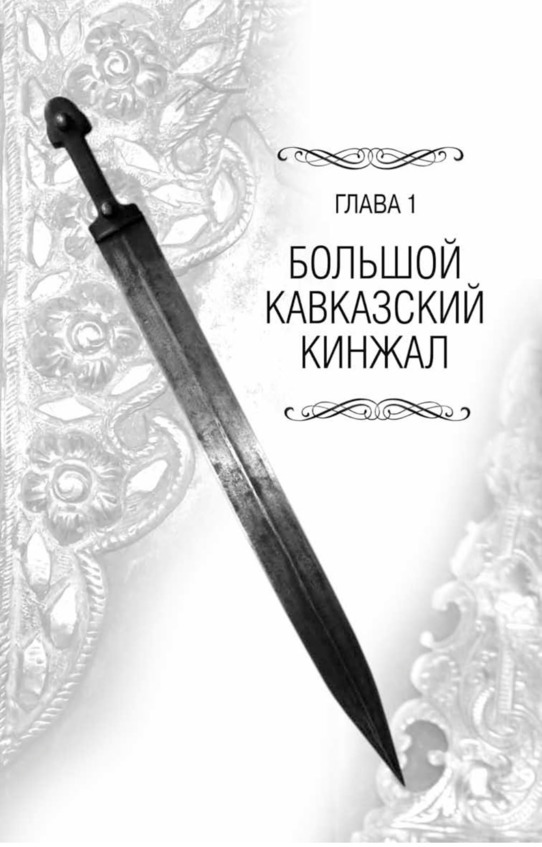 В первой главе рассказывается о большом кавказском кинжале. О кинжалах вообще и о кавказских кинжалах написано достаточно много. Но каждый кинжал в отдельности представляет из себя как бы банк информации и имеет свою историю.