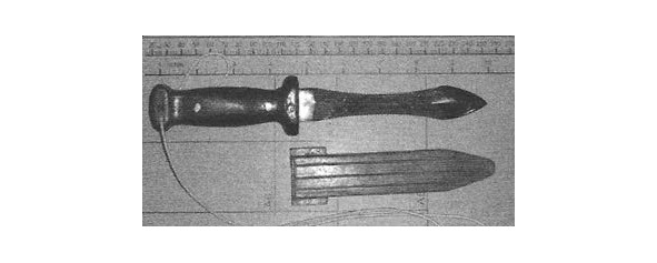С точки зрения боевого применения эффективность колющих качеств даже такого «деревянного» оружия кинжального типа, независимо от материала изготовления, в руках профессионала весьма высока. И такой нож может быть не менее опасным, чем стальные ножи, стилеты и шпаги, спрятанные, например, в трости (фото 7).