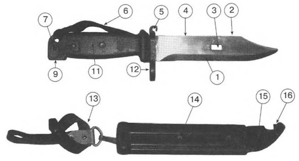 Устройство армейских штык-ножей (фото 9, 9а, 10):