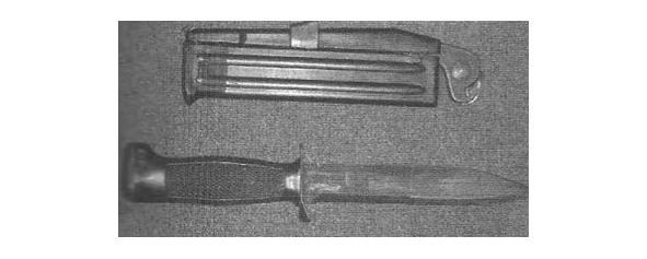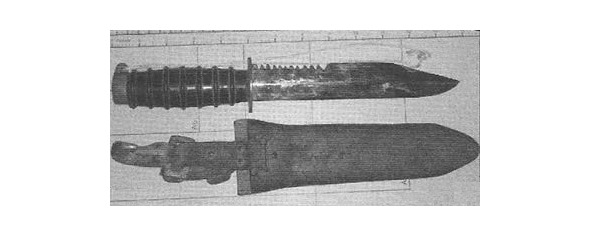 учетом необходимости пробивания достаточно плотной и толстой военной одежды. Определенная особенность формы клинка позволяла с одинаковой эффективностью наносить колющие удары вне зависимости от того, как зафиксирован нож – лезвием к себе или от себя.