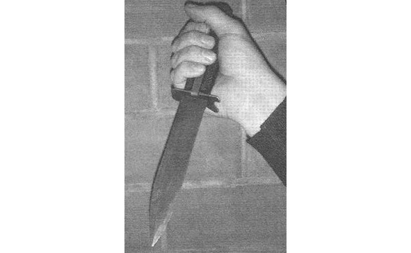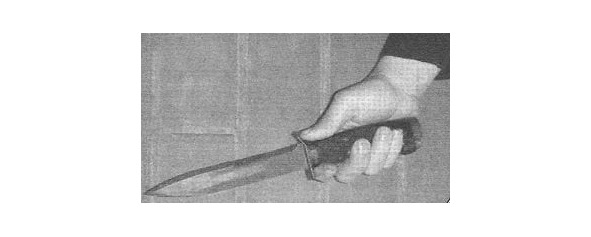 Фото 8. Хват ножа клинком в сторону от мизинца