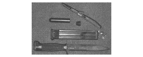 Стрельба из НРС-2 ведется бесшумно и беспламенно на дальность до 25 метров с использованием специальных патронов (7.62 х 42 – СП-4). Для этого особым образом сконструирована рукоять ножа, оснащенная прицельным приспособлением (фото 16).