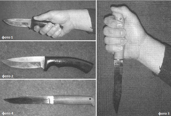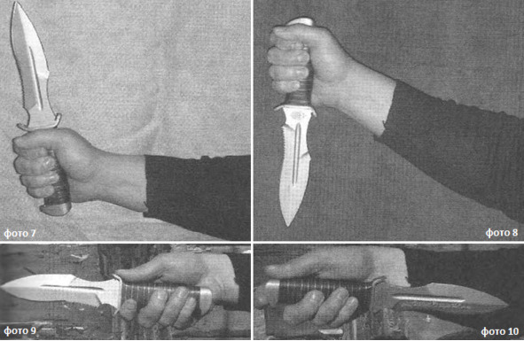 1. Хват ножа клинком в сторону от большого пальца (фото 7).