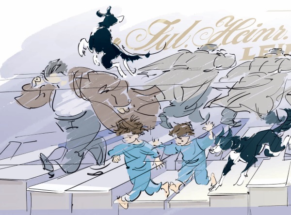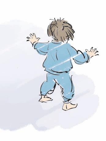 Антошка «нарисовал» дяденькины шаги низкими, а потому тяжёлыми звуками. «Он ведь большой и тяжёлый», – подумал Антошка. А шаги собаки – высокими и быстрыми. Ритм шагов дяденьки и собаки зазвучали в Антошкиной голове так ясно и так ярко, что больше он уже не мог лежать без движения.