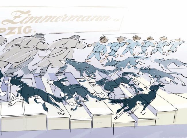 Но Антошка понимал, что если сейчас будет играть, то папа с мамой рассердятся. Он вздохнул, отошёл от окна, лёг в постель и стал представлять, как идёт дяденька по улице – как будто марширует: раз-два, раз-два. Антошка уже выучил этот размер, он назывался две четверти. А дяденьке навстречу, чуть припадая на переднюю лапу, в размере четыре четверти бежит собака: раз-два-три-четыре, раз-два-три-четыре, – она торопится по очень важным собачьим делам. У дяденьки широкий шаг. У собаки – мелкий и стремительный.
